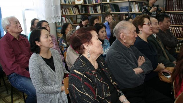 Приехала целая группа в составе десяти человек под руководством директора Август Егорова. Среди гостей были главный редактор издательства Валерий Луковцев, члены Союза писателей РС (Я) Саргылана Гольдерова, Александр Постников и другие. Они посетили села Мегино-Алдан, Кескил, Крест-Хальджай, Сайды и поселок Хандыгу. В поселке Хандыга встреча с читателями прошла в центральной районной библиотеке. Перед гостями выступили ученики Хандыгской СОШ: со стихотворением «Балыксыттар» — ученики 3 «б» класса (учительница Дария Чекурова), со стихами об охотнике — ученик 3 класса Ариан Винокуров. Мужской ансамбль «Ахтылҕан» (руководитель – отличник культуры РС (Я) Айсен Захаров) исполнил песню «Сүрэхтэр кэпсэтэр кэмнэрэ». О работе издательства, его достижениях, участиях в российских выставках рассказали директор Август Егоров, редактор-методист Марина Никифорова, редактор заказных изданий Марина Степанова. Основной задачей издательства является подготовка и выпуск печатных изданий любого вида книжной, рекламной и другой продукции. ««Бичик» знают и в России, он входит в список лучших издательств страны. Об этом свидетельствуют не только тиражи выпускаемой продукции, но и награды и отзывы, полученные во время участия на российских выставках«, — отметил директор. Издательство сотрудничает с творческими людьми республики. Многие писатели и поэты выпускают свои произведения в «Бичике». Среди них член Союза писателей РС (Я), известная поэтесса С.В. Гольдерова – Саргы Куо, которая приняла участие в Днях издательства в нашем районе. Она во время встречи в Хандыге прочитала стихи своего отца, известного поэта Василия Гольдерова и собственные произведения. Август Егоров вручил благодарственные письма за помощь в организации проведения Дней национального книжного издательства «Бичик» зам.главы Томпонского района по соцвопросам Петру Новгородову, директору центральной районной библиотекой Елене Колодезниковой и главе Томпонского района Георгию Герасимову. Индивидуальный предприниматель Гавриил Попов отмечен знаком «За вклад в развитие национального книгоиздательства» с золотыми часами. Как отметил Август Васильевич, Гавриил Гаврильевич более 20 лет добросовестно сотрудничает с издательством «Бичик». Также были вручены различные номинации активным читателям: «Самая читающая семья» — А.В. Саввиной и А.И. Олесовой; «За изучение родословных» — Евдокии Неустроевой; за сотрудничество – местному автору, члену Союза писателей РС (Я) Р.Р. Тарабукину, учителям Хандыгской СОШ Саргылане Поповой, Марии Чекуровой, начальнику отдела воспитания и дополнительного образования управления образования Елене Винокуровой и другим. Желающие смогли задать гостям интересующие их вопросы. Это касалось, например, переиздания книг известных авторов, в том числе нашей землячки А.С. Сыромятниковой; перевода книг якутских авторов на русский язык, расценок на издание книг и т.д. Местный автор Р.Р. Тарабукин попросил помочь с изданием его книги «Исцеление». Август Егоров пообещал сделать скидку на 20%. В таком русскоязычном поселке, как Хандыга, книги на якутском языке являются для детей основным из помощников в изучении родного языка. В завершении встречи взял слово Петр Новгородов: — Благодарим Августа Васильевича и его команду, которые в течение двух дне