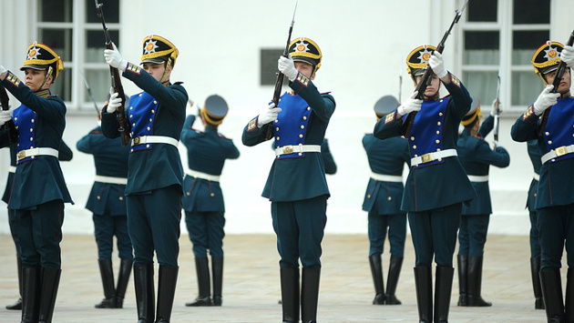 Первая в этом году торжественная церемония развода пеших и конных караулов Президентского полка Федеральной службы охраны (ФСО) пройдет в полдень 15 апреля на Соборной площади Кремля. Об этом ТАСС сообщили в Центре по связям с прессой и общественностью ФСО. В 2017 году будет проходить 13-й сезон традиционной церемонии. Предыдущие 12 лет развод караулов проходил каждую субботу с апреля по октябрь. Посмотреть церемонию может любой желающий, имеющий входной билет в Кремль, в стоимость которого входит и посещение музеев Московского Кремля. Традиционные элементы церемонии - различные перестроения гвардейцев и выполнение специальных строевых приемов с оружием. Также неизменной "визитной карточкой" кремлевцев останется строевой шаг. Обычно аплодисменты зрителей заслуживают и дефиле конного эскорта. А в прошлом году впервые в церемонии участвовала женщина-кавалерист лейтенант Ирина Мамаева, которая служит в Президентскому полку. Развод караулов в Кремле стал новым символом Москвы, наряду с ритуалом смены часовых Почетного караула у Могилы Неизвестного Солдата. Развод гвардейских караулов считается одной из самых красочных и зрелищных воинских церемоний, закрепленных в воинских Уставах и Артикулах с Петровских времен, хотя подобные церемониалы существовали еще при Великом князе Иване III. Во времена Российской империи развод не был привязан к определенному месту и проводился в резиденции или ставке, где непосредственно находился император. Гвардейцы несли караульную службу как во внутренних помещениях резиденции, так и на внешних ее постах. Церемония была возрождена в 2005 году.