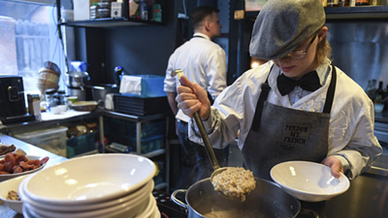Изменить отношение людей к детям с синдромом Дауна, которых часто и совершенно заслуженно называют "солнечными детьми", призван проект "Это завтрак", который проходит по воскресеньям в Новосибирском ресторанчике Pardon my French. Авторов программы совершенно не устраивает, что многие до сих пор не хотят или не могут с пониманием относиться к тем, кто от них отличается. Чтобы исправить это, активные новосибирцы и придумали свой проект: Павел Есипов — 19-летний парень с синдромом Дауна — готовит различные блюда и угощает ими гостей. Идея на поверхности В маленьком зале ресторанчика очень тепло и по-домашнему уютно. На открытой кухне Паша Есипов в фирменном фартуке заведения варит овсяную кашу для гостей. Ему помогает шеф-повар Франсуа. Паша невозмутим, серьезен и поглощен процессом. Рядом мама, которая, похоже, переживает гораздо больше сына. Цель этого проекта, как говорит Марина Харитонова, его инициатор и друг семьи Есиповых, — познакомить людей с особенными детьми и показать, насколько они талантливы, открыты к общению, как любят учиться и интересуются всем новым, как нуждаются в общении и поддержке. Выручка от первых двух завтраков — а это несколько десятков тысяч рублей — пошла в фонд "Даун синдром". "Я давно знакома с мамой Паши — Татьяной и самим Пашей, и она мне как-то рассказала, что ее сын готовит для нее вкусные завтраки. Я подумала — а пусть он накормит и других людей. Так спонтанно и родился этот проект", — рассказывает Татьяна. "Быстро нашли место — в ресторанчике у Франсуа Фурнье: с одной стороны, здесь обстановка камерная, уютная, с другой — кухня открытая и процесс приготовления на виду. И главное — сам Франсуа отнесся к нашему предложению, как к должному — никаких сомнений и вопросов у него не возникло". Выбирай на вкус Каша готова, Павел угощает гостей, предлагает добавить в блюдо орешки или варенье. За вкусным завтраком и чашкой чая завязывается беседа: кем могли бы работать люди с синдромом Дауна и чем им можно реально помочь? Паша, например, закончил коррекционную школу, потом училище, после которого получил и профессию — рабочий зеленого хозяйства. Сейчас учится на компьютерных курсах. Вполне вероятно, что его третьей профессией станет поварская. Сейчас круг занятий для людей с синдромом Дауна действительно стал шире: есть среди них актеры и даже целый театр "Простодушных", есть художники, модели, дрессировщик зверей. Но пока это единичные случаи. "Понятно, что такие люди все же не могут быть конкурентоспособны на рынке труда, поэтому, на мой взгляд, должна работать государственная система поддерживающего трудоустройства. Люди с синдромом Дауна могут быть хорошими помощниками поваров, администраторов торгового зала, официантами. Но должна быть законодательная поддержка. Пока я нахожусь на депутатском посту, я стараюсь максимально проработать этот вопрос", — говорит Пашина мама, Татьяна Есипова. Делай сам Бороться ей пришлось с рождения ребенка — за его здоровье, за то, чтобы он пошел в обычный детский сад. Искала специальную литературу, которой почти 20 лет назад было мало. Пятнадцать лет назад Татьяна Есипова создала организацию "Даун синдром". Руководствовалась принципом "если хочешь сделать что-то хорошо — делай это сам". Когда появился опыт, подумала: почему бы не поделиться им с другими родителями. "И, тем не менее