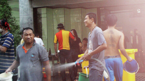 Сонгкран (Songkran) — традиционный тайский Новый год, приходящийся на самое жаркое в Таиланде время года — на середину апреля. Официально празднуется три дня — с 13 по 15 апреля, однако в некоторых городах празднование может начинаться 11-12 апреля и длится до 18 апреля. Наиболее масштабное празднование тайского Нового года происходит на севере страны в городе Чианг Май (Chiang Mai). Помимо Таиланда Новый год в это время традиционно празднуется в Лаосе, Камбодже и Мьянме, в некоторых районах Вьетнама, Китая, Шри-Ланки и Индии. Слово Songkran происходит от санскритского sam-kranti и означает "проходить", в данном случае — прохождение солнца из одного знака зодиака к следующему. Празднование Сонгкрана отмечает день, когда светило переходит от созвездия Рыб в созвездие Овна, что знаменует начало нового астрологического года по древнеиндийскому календарю. До 1888 года Сонгкран был единственным Новым годом, который праздновался в Таиланде. Позже в стране возникла традиция праздновать также и западный Новый год. Изначально дата празднования Сонгкрана была непостоянной и вычислялась при помощи астрологических расчетов. В настоящее время Сонгкран ежегодно отмечается 13 апреля. Исторически Сонгкран — это праздник любви и почтения, праздник, который тайцы стремятся встретить всей семьей. Первый день праздника носит название "Ван Сангкан Лонг", он посвящен прощанию со старым годом. В этот день тайские семьи приводят в порядок свои дома, выбрасывают или сжигают все старые и ненужные вещи, так как считается, что они могут принести своему владельцу несчастье в будущем году. Статуи Будды из храмов проносят по главным улицам городов и деревень, проходит красочный парад цветов и конкурс красоты на звание Мисс Сонгкран. Утро второго дня празднования Сонгкрана — "Ван Нао" или "Ван Да" — начинается с похода в храм, где одетые в новые одежды тайцы читают молитвы (хуралы). Монахам преподносят приготовленные заранее изысканные домашние угощения и новые рясы, подчеркивая тем самым почтение к ним как к учителям и наставникам. После возвращения из храма наступает время второй части праздничной церемонии — омовение семейной статуэтки Будды чистой водой с лепестками роз и жасмина (rod nam dam hua). Одной из важнейших составляющих праздника является повсеместное обливание друг друга холодной водой (иногда перемешенной с тальком или льдом). Люди стоят на обочинах дороги или прячутся в кустах и со словами Sawasdee pi mai (С Новым годом!) обливают всех прохожих из ведер или водяных пистолетов. Кузова проезжающих грузовиков и пикапов загружены большими бочками с водой, которая попадает на каждого пешехода, мимо которого они проезжают. Тот, кто осмелится выйти на улицу, не избежит участи стать вымокшим до нитки. Разбрызгивание воды для тайцев — это способ выразить почтение и пожелание удачи. Если улыбающийся таец польет водой вашу спину и плечи, значит, он желает вам счастья. Этот обычай происходит из глубокой древности: традиционно церемония состояла в том, чтобы зачерпнуть воду в ладони и выплеснуть через плечо, смывая совершенные за год плохие поступки и дурные мысли, духовно очиститься. На Сонгкран тайцы раскрашивают лица, шеи и торс глиняной пастой из маленькой серебряной чашечки, что символизирует защиту от нечистых сил, а также надевают цветочные гирлянды на шеи, завязывают на запя