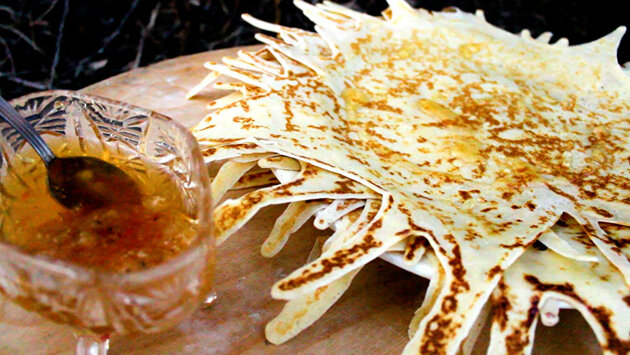 С древних времен балакенцы встречают своих гостей махарой — мучным изделием, имеющим форму солнца. Домозяйка Садагет Абдуллаева говорит, что махара — любимое лакомство всех жителей северного региона страны. Для приготовления необходимо: Молоко — 1 литр Мука — 1 стакан Яйца — 2 штуки Соль — половина чайной ложки. Яйца, молоко и муку Садагет Абдуллаева взбивает до получения однородной жидкой массы. Добавляет щепотку соли и приступает к готовке. А выпекают традиционное угощенье на сковороде — садже, предварительно смазав его курдючным жиром. По приготовлению обмазываем наш солнечный махара сливочным маслом и подаем на стол. Приятного аппетита!