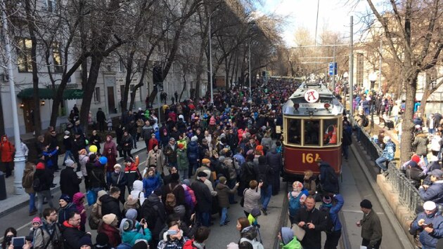 Парад трамваев прошел в Москве 15 апреля. Ровно в 11:00 ретро-трамваи начали движение от депо имени Апакова. От Калужской площади, через центр столицы, поехали в сторону Чистопрудного бульвара. Там колонну встречали москвичи и туристы. Вагоны сделали почетный круг, остановились и открыли двери, чтобы все могли зайти, посидеть и сфотографироваться. В параде участвовали 16 трамваев. Здесь и знаменитый «Коломенский моторный», звезда фильмов «Покровские ворота», «Место встречи изменить нельзя» и «Холодное лето 53», несколько моделей «Татры», самый распространенный в дореволюционной столице состав — со фонарем на крыше. Возглявил колонну уникальный конный вагон с рельсовым ходом образца XIX века. Интерьеры и застекленного салона и второго этажа полностью соответвуют оригиналу. «Конка» вмещала 40 пассажиров. Причем подниматься наверх могли только мужчины. Для женщин был открыт только первый этаж трамвая. Сидеть наверху дамы не могли: считалось, что забраться туда в пышном платье или юбке, не нарушив правил этикета, просто невозмжно. Некоторые улицы столицы для ретро-транспорта перекрыли второй раз за неделю. Сначала — ночью, для репетиции маршрута. Впервые по Москве трамвай поехал 118 лет назад. Именно к этому событию и приурочен парад. В конце колонны оказались трамваи, которые не только перевозили пассажиров, но и выполняли другие функции. Вагоснегоочиститель с щеткой для расчистки путей, вагон-рельсотранспортер и вагон-вышка. Такой использовали для осмотра и ремонта контактных сетей. Рядом со своими предшественниками стоял новеший «Витязь-М» — низкопольный, оборудованный системой климат-контроля и видеонаблюдением. В течение ближайщих трех лет Мосгортранс получит 300 таких вагонов.