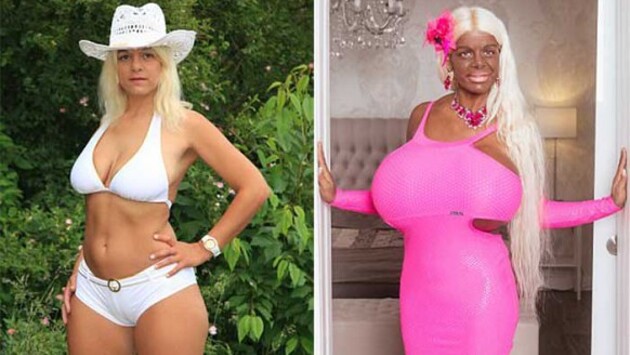 Стюардесса из Германии, ставшая гламурной моделью, потратила 62,5 тысячи долларов на операцию, чтобы превратить себя в «экзотическую Барби». Мартина Биг, которая утверждает, что ей 28 лет, накачала грудь до размера 70S и использует инъекции для загара, а также собственный мощный солярий с 50 лампами, чтобы добиться темного, насыщенно коричневого оттенка кожи. Мартина утверждает, что у нее самая большая грудь в Европе. У нее уникальные импланты, которые можно докачивать соляным раствором, и она планирует потратить еще больше на хирургию, несмотря на то, что ее внешность и без того уже достаточно экстремальна. Загарозависимая немка когда-то пыталась подражать Памеле Андерсон и Кэти Прайс, но сейчас считает, что их формы недостаточно округлы, и говорит, что хочет стать как можно темнее. Источник: Daily Mail Мартина начала баловаться пластическими операциями в 2012 году, когда ее бойфренд Михаэль подал ей идею пойти в модели. Более двух месяцев назад Мартине сделали три инъекции для повышения уровня меланина, которые придали ее коже оттенок красного дерева. Слева — Мартина до своего преображения, справа — после трех инъекций для загара. «Я не ожидала, что так потемнею, но все сработало просто отлично. Мне очень нравится, и я хочу дойти до предела. Сейчас я хочу становиться все темнее, чтобы посмотреть, где максимум». Грудные импланты Мартины увеличиваются при помощи соляного раствора, и она может менять размер груди, как и когда захочет. «Я обожаю контраст моих высветленных волос и темной, насыщенно коричневой кожи. Я обожаю смотреть за реакцией людей. Я вижу их огромные глаза, когда прохожу мимо, и их шокированные лица. Они, наверное, думают: “Как такое возможно?”» Мартина настаивает, что не старается подражать чернокожим девушкам, а вместо этого хочет создать образ неповторимой экзотической Барби. «Да, у меня кожа африканской девушки. Но я не притворяюсь чернокожей девушкой. Я собираюсь создать неповторимый и экзотичный образ Барби с сильным загаром, ярко-светлыми волосами и увеличенными формами. Мне нравится этот образ». Она не собирается завязывать с увлечением загаром. Мартина говорит, что хочет сделать еще больше меланиновых инъекций и продолжает использовать персональный мощный солярий с 50 лампами в своем доме в Трире. «Сначала мои поклонники были возмущены и спрашивали, зачем я это сделала, но это из-за того, что они никогда раньше не видели, чтобы белая девушка изменила цвет своей кожи на африканский черный. Но теперь они к этому привыкли и радуются вместе со мной. Они говорят: “О, мне нравится твой стиль! Давай еще темнее!”» Мартина уже со светлыми волосами, но со значительно меньшим размером груди. Старая фотография Мартины, когда она работала моделью. Справа она уже после операции по увеличению груди во время поездки в США. Мартина не собирается менять цвет глаз и бровей, которые, как она говорит, останутся единственными естественными частями ее облика. Друзья девушки были поражены ее решением изменить цвет кожи, а врач, который назначил инъекции, после процедур вообще ее не узнал. «На седьмую неделю после инъекций я отправилась показаться врачу. Я поздоровалась, а он посмотрел на меня так, будто не знает, кто это у него в приемной. Это было очень забавно. Он сказал: “Я никогда раньше не видел, чтобы девушка становилась настолько черно