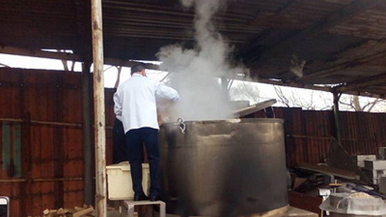 Повара в Хабаровске опробовали в тестовом режиме котел объемом 2,3 тысячи литров. Он будет использован 24 июня для установления рекорда России - по количеству накормленных ухой из амурской рыбы людей и объему самой ухи, которую приготовят по рецепту губернатора Хабаровского края. Об этом сообщил журналистам во время тестовой варки ухи председатель комитета пищевой и перерабатывающей промышленности правительства Хабаровского края Николай Крецу. "Сегодня мы варим уху в тестовом режиме в специально созданном котле объемом 2,3 тыс. литров. Кроме котла, уху будут готовить восемь полевых кухонь объемом по 150 литров, в общей сложности у нас будет 3125 литров приготовленной ухи. Так мы идем на два показателя по установлению рекорда - по количеству одновременно накормленных людей - 12,6 тыс. жителей Хабаровского края и по приготовленному объему", - рассказал Крецу журналистам. По его словам, организаторы намерены установить рекорд России по этим показателям, но, возможно, удастся выйти и на рекорд Гиннесса, заявки уже отправлены и обратная связь получена. "Котел для варки ухи изготовлен "на базе" котла для варки пива, повара будут подниматься наверх по двум лестницам. Нам важно посмотреть, как себя "поведет" котел и провести хронометраж приготовления бульона", - объяснил необходимость теста председатель комитета.