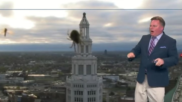 Курьезный случай произошел на одном из телеканалов США. Ведущего до смерти напугал паук, неожиданно появившийся в кадре. Патрик Хаммер в прямом эфире рассказывал зрителям о погоде. Когда вместо прогностической карты режиссер включил панорамный вид города, на экране появился паук, оказавшийся прямо напротив камеры. Увидев членистоногого, ведущий в панике отбежал в сторону, размахивая руками. "Это еще что такое?", - спросил Хаммер из-за кадра. "Мать природа", - ответил ему кто-то из коллег. Как отмечает РИА Новости, на этом все не закончилось. Паук поймал в свои сети мошку и начал есть ее прямо на глазах у зрителей. "Интересно, кто станет следующей жертвой", - пошутил ведущий. После этого паук начал двигаться в его сторону. Хаммер снова выбежал из кадра.