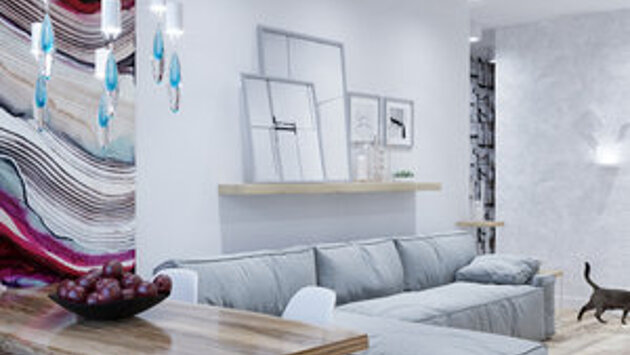 Монохромные интерьеры всегда вызывают много споров. Одним они кажутся скучными и безрадостными, другим – спокойными и умиротворяющими. Как северная природа, которая радует любителей путешествовать по финским и карельским озерам. Молодым супругам с маленькой дочкой, для которых дизайнер Татьяна Крыгина разработала этот проект, краски северной природы не кажутся скучными. По их просьбе интерьер был выполнен в светлых тонах, которые разбавлены отдельными яркими акцентами. Оттенки серого и белого в сочетании с цветом светлого дерева создают в квартире легкую, расслабляющую атмосферу. Монохромный интерьер не выглядит скучным и монотонным благодаря разнообразию фактур: для акцентов использованы имитация кирпичной кладки, окрашенной в белый цвет, обои, яркое цветное панно и даже крупноформатная деревянная мозаика. В квартире очень много дерева: пол, обрамление проема между гостиной и кухне, кухонные полки и столешницы, стеллаж в гостиной – всюду присутствует светлое дерево с разным рисунком. Столешница обеденного стола и подоконник в кухне, превращенный в стол для завтраков, изготовлены из цельного куска дуба. Ощущение комфорта создает не только простая планировка и светлая цветовая гамма, но и большое количество мест хранения. В спальне и гостиной есть гардеробные, в детской еще и отдельно стоящие шкафы, тоже выкрашенные в белый цвет и потому почти незаметные. Сочетание серых оттенков и светлого дерева оставляет ощущение продуманной простоты, поэтому дизайнер и дала своему проекту название: «нордический шик» Холл Отделка: обои под дерево; декоративная штукатурка, Seta Metallico Argento; декоративный кирпич Напольное покрытие: паркетная доска, Barlinek; керамогранит, GresWood Мебель: прихожая, ИКЕА; модуль козетки дивана, The Idea Декор: зеркало, Bleu Nature Гостиная Отделка: обои; панно, Карл Робинсон Освещение: VIBIA Мебель: диван, Cassina Кухня Отделка: краска, Little Greene; декоративная штукатурка, Seta Metallico Argento Техника: холодильник, Smeg Спальня Отделка: обои, Eco Wallpaperfront; декоративный кирпич Напольное покрытие: паркетная доска, Barlinek Создайте интерьер с товарами из магазина InMyRoom: