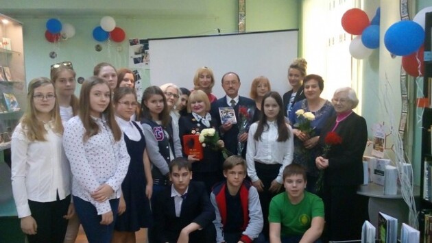 Мероприятие было направлено на сохранение преемственности поколений на основе исторической памяти, примерах героического прошлого, сохранения великих традиций. Цель мероприятия – воспитание у детей патриотических чувств, гордости за свою страну и интереса к ее истории. Примечательно, что в читальном зале библиотеки, где собрались жители района, писатели и поэты, было много учащейся молодежи. Елена Мамаева, заведующая библиотекой, заместитель главы муниципального округа Проспект Вернадского открыла вечер, поприветствовав гостей и, что примечательно, сказала о каждом из присутствующих немало добрых слов. Был представлен подарочный экземпляр четырехтомника «Солдатам Великой Победы – поклон, благодарность и слава!».Гости вечера узнали о судьбе книги, о ее пути к читателю. Свое литературное творчество представили Марина Буровина и Виталий Задворный. Стихи начинающей поэтессы Марины Буровиной проникновенно прочитала Елена Анисимова, хорошо известная в районе как автор стихов собственного сочинения. Кстати, Елена Корнеевна прочитала одно из них, написанное недавно о Крыме. Замечу, что интерес к библиотеке №215 с каждым днем у читателей все больше, потому что здесь совершенствуют форму работы, которая привлекает людей. Так в рамках патриотического вечера состоялась прямая линия с Вологдой и финским городом Мюнямяки, цель которой – рассказать о современной городской среде и любимых горожанами парках. Внимательно выслушав и посмотрев представленный видеоматериал, подготовленный Вологдой и финскими друзьями, жители нашего района с помощью Елены Мамаевой познакомили своих собеседников со своим парком, им. 50-летия Октября. В диалоге с Вологдой и Финляндией участвовали жители района Проспект Вернадского, общественные советники, представители ВПП «ЕДИНАЯ РОССИЯ», учащиеся школ. Общение было продолжено во время чаепития. Читали стихи, посвященные фронтовикам. Авторам и чтецам с благодарностью дарили цветы. Гости расходились, говоря, что уносят с собой душевное тепло.
