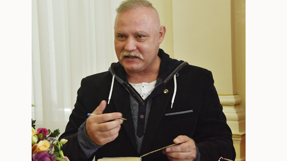 В четверг в Екатеринбурге состоялось торжественное открытие «Аэлиты-2017» —старейшего в нашей стране фестиваля фантастики. В этом году лауреатом «Аэлиты» стал писатель и поэт Андрей Белянин. Для основателя жанра юмористического фэнтези, автора более чем 50 книг, одного из самых тиражных и популярных писателей современной фантастики премия уральского фестиваля стала едва ли не единственной наградой за 22-летний творческий путь. «ОГ» решила узнать у фантаста — почему. «Хочу понять уральский юмор» С Беляниным мечтают познакомиться многие, но Андрей Олегович человек совершенно непубличный и на различные фестивали и конвенты практически не ездит. Мне Белянин уделил время после официальной пресс-конференции, на которой его буквально завалили вопросами — ещё бы, он редкий гость в нашем городе. — У меня совершенно нет опыта общения с фестивалями, — смущаясь, отмечает фантаст. — Я, как правило, на них не бываю. Задача писателя, как ни странно, писать книги, а всё остальное — это дело стороннее. На творческой встрече с читателями Андрей Белянин рассказал много интересных и смешных историй. Фото: Алексей Кунилов — В Екатеринбурге впервые? — Нет, выступал у вас пару-тройку лет назад. Это был мастер-класс по владению казачьей шашкой, а не творческий вечер с читателями. А ещё была очень весёлая встреча — с руководителями народных хоров. До сих пор не понимаю, зачем хоровикам нужна была встреча с писателем-фантастом… Сейчас я хочу понять ваш уральский юмор. Во всех городах шутят по-разному. Есть традиции московского, питерского, одесского, кубанского юмора. Пока не знаю, как шутят у вас. — У вас столько книг, огромные тиражи, народная любовь и практически полное отсутствие литературных премий… — У меня написана куча книг — около 60 штук. Это правда. У меня достаточно высокий уровень тиражей. Сейчас суммарный тираж около 6 миллионов. Просто я не занимаюсь премиями. Это, если можно так сказать, отдельные игры. Нужно встречаться с определёнными людьми, нужно находиться в той или иной творческой тусовке. А я предпочитаю заниматься тем, что мне нравится — писать книги. Меня это вдохновляет, мне это приятно. «После Лукьяненко страна перешла на вампиризм» — В середине 90-х вы начали в уникальном на тот момент жанре — юмористическом фэнтези, и были едва ли не первооткрывателем этого направления. Как сейчас обстоят с ним дела? — Не хочу, конечно, показаться нескромным, но я был первым. Издательство «Армада» впервые в России поставило на свою книгу следующую подпись: «Юмористическое фэнтези». До этого таких строчек никто не писал. Была, правда, подобная серия у Успенского, но там было что-то ироническое. В те времена казалось, что юмор — это что-то низкопробное. Тонкая ирония, сатира — это да. Это вроде как наше, родное, на чём мы воспитывались. Но не юмор. Всем тогда казалось, что должно быть обязательно очень-очень смешно. Но со временем это направление устоялось, и сейчас юмористическое фэнтези, как и фантастику, активно делают многие авторы и издательства. Андрей Белянин пробудет в Екатеринбурге до конца недели. В его программе - встречи, мастер-классы, лекции. Фото: Алексей Кунилов — Не боитесь конкуренции? — Любой успех всегда вызывает желание попробовать свои силы. Соответственно, каждый интересный писатель обязательно имеет конкурентов. К примеру, 