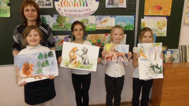 Группа продленного дня (кл. рук. Комарова Н. В. и Васильева О.А.) Ивана Сергеевича Соколова - Микитова с полным правом называют певцом родной природы, глубоко любящим свою большую Родину. Особенно звучит для писателя это слово, полное глубокого смысла. Читая рассказы Соколова - Микитова, представляешь себя, стоящим рядом с автором на лесной опушке и тихонько наблюдаешь за жизнью лесных зверей и птиц. Беседу о творчестве замечательного писателя провела со школьниками из групп продленного дня (кл. рук. Комарова Н. В. и Васильева О.А.) сотрудник библиотеки - филиала № 1 Илюхина Татьяна Викторовна. Дети познакомились с произведениями Ивана Сергеевича, дружно отвечали на вопросы викторины, отгадывали загадки, цитировали отрывки из полюбившихся рассказов и даже успели нарисовать рисунки, которые подарили библиотеке. Ребята получили памятные закладки и массу впечатлений от услышанного.