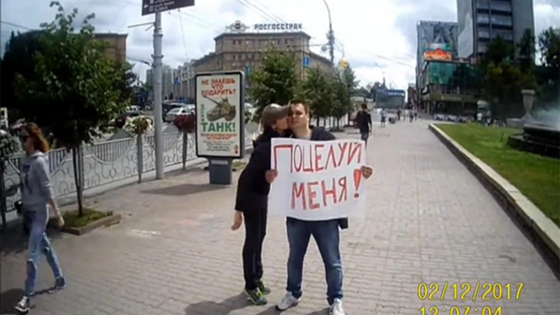 Организатором «поцелуйного» эксперимента выступил плотник Влад Петров, который называет себя «экспертом по знакомствам». Он и двое его адептов (все трое холосты) бродили по Первомайскому скверу с плакатом. На нем красовалась огромная надпись «Поцелуй меня». По словам Влада, всего за час акции его и остальных парней поцеловали десять красавиц. «К несимпатичным девушкам мы не подходили, – говорит Влад. – От женщин в возрасте плакат прятали, чтобы не вгонять в соблазн, а вот молодым показывали». Про себя Владислав Петров пишет, что он «от природы общительный, но до института отношения с девушками не особо складывались. У меня были девушки из класса или из параллели, но не скажу, что я был счастлив в этих отношениях. Первый опыт, не более того. На улицах я еще не знакомился, было, как и многим, страшно. Все поменялось в институте, когда я оказался в женском коллективе – тут я понял, что девушки – такие же люди, и не надо быть академиком, чтобы с ними общаться. Так я довольно быстро перестал стесняться. Я стал знакомиться в институте, на улицах, торговых центрах, вагоне метро, в автобусе – где угодно. К середине первого курса я мог спокойно зайти в переполненный лифт и начать разговор со студенткой. И самое интересное, когда ты уже втянулся в этот процесс и не паришься из-за того, как на тебя отреагируют, девушки начинают сами идти на контакт. Что-то рассказывают, смеются, соглашаются обменяться телефонами». Добавим, что это не первая подобная акция в Новосибирске. Ранее около памятника Ленину проходил флешмоб «Обними Новосибирск». Принять участие в нем мог любой желающий – достаточно было прийти с табличками «Обниму бесплатно», «Обнимашки» и с любыми другими похожими словами или фразами.