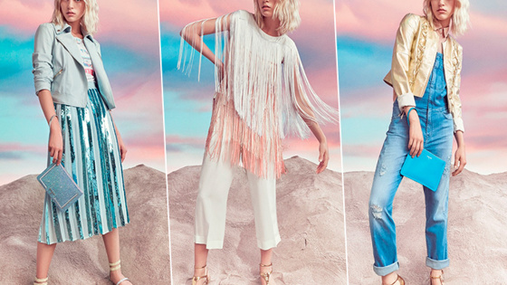 Свободные, романтичные силуэты 70-х в стиле бохо с бахромой, широкими брюками, жилетами и расклешенными рукавами сочетаются со смелыми трендами 90-х — кожаными куртками, глиттером, полупрозрачными тканями и денимом.