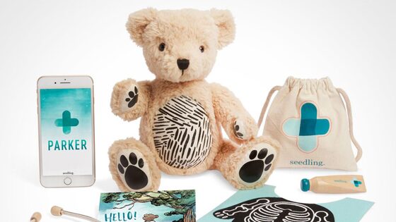 Apple — техногигант, поэтому мишка необычный. Он работает с дополненной реальностью (AR) через iPad или iPhone. Пока рано бросаться в российский сегмент магазина Apple, игрушки там нет. Зато есть, например, в американском. Он обойдётся в 59.95 долларов, плюс доставка. Фактически, это обычный плюшевый медведь с парой накладок-фартуков и деревянными врачебными инструментами. AR-взаимодействие происходит через фирменное приложение Parker, там мишку можно лечить, смотреть его косточки, мерить температуру и прочее. Такой вот реальный тамагочи. Когда медведь радуется – вокруг расцветают цветы и поют птицы. Зачем это в магазине Apple? Очевидно, что компания всеми силами продвигает свои AR-технологии. Медведь Parker — первая весточка в огромном количестве подобных игрушек в будущем. Но я не могу представить, зачем покупать такую подарок своему сыну. Чтобы он проводил больше времени в папином iPad? Или пора покупать ему свой? Бред какой-то. Возможно, всё изменится с появлением новой игрушки или AR-устройства. Либо когда сын станет постарше. Но пока что дополненная реальность для маленьких детей (а это и есть ЦА такого мишки) — однозначно мимо.