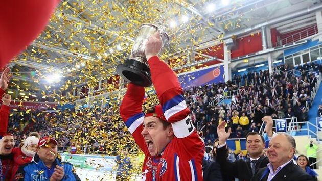 После того, как наши игроки чуть не задавили Романа Черных, наступили секунды осознавания того, что она совершили. Максим Ишкельдин приобнял и Сергея Ломанова и чемпионский кубок. Показалось, что это тот момент, когда один лидер передает другому чемпионский дух и, заодно, победные традиции. Ломанов стал десятикратным чемпионом мира. Это – рекорд! Кстати, у Юрия Викулина девять золотых медалей. Еще один ветеран Сергей Шабуров без сил катается за линией всеобщего ликования. Не алмаз – бриллиант! Один из братьев Прокопьевых натягивает на главный приз чемпионата мира бейсболку. Андрей и Михаил фотографируются с «одетым» кубком, но чтобы все видели надпись «РОССИЯ». Шведы в это время стоят и сидят прямо на льду. Они тоже отдали все силы для победы, но россияне в воскресный вечер были сильнее. После получения медалей (они очень увестстые), победители отправляются в раздевалку. Здесь – очередные реки поздравлений: президент ФХМР и Международной федерации бенди Борис Скрынник, губернатор Хабаровского края Вячеслав Шпорт, митрополит Хабаровский и Приамурский Владимир, Николай Валуев… Здесь же актер Андрей Мерзликин. Говорит, что в детстве гонял мяч в родном Королеве. Уточняю: – Точно играли в бенди? – Не в бенди, а в русский хоккей! Андрей Отправляется собирать автографы – тот редкий случай, когда просит он, а не у него. Алан Джусоев собирает росписи товарищей по победе на игровой фуфайке. Так прямо и расписываются – на Алане. Шампанское приготовили заранее – какие, к черту, предрассудки! Большинство игроков давно знают, что в этот кубок помещается ровно 3 литра или четыре бутылки. Первый глоток – главному тренеру. Это – традиция. Михаил Юрьев пьет из этого кубка третий раз (раньше после ЧМ-2013 в Швеции и ЧМ-2014 в Иркутске). Затем очередь доходит до Сергея Ломанова. «Пей до дна!» – шутят партнеры. Дежурная шутка. Сборная России - чемпион мира по бенди Кто пробовал победное шампанское, тот непременно захочет повторить. Можно уже через год. ЧМ-2019 пройдет в Швеции. ЛУЧШИЕ ИГРОКИ ЧМ-2018 Вратарь: Роман Черных (Россия) Защитник: Эрик Сэфстрем (Швеция) Нападающий: Максим Ишкельдин (Россия) Игрок (MVP): Даниэль Берлин (Швеция)