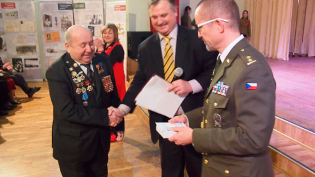 Представитель посольства Чехии, помощник военного атташе посольства Мартин Каниа рассказал о вкладе Чехословакии в борьбу с фашизмом и презентовал учебному заведению несколько объемистых иллюстрированных книг. В ГБОУ «Школа Марьина Роща имени В.Ф. Орлова» прошло открытие выставки, посвященной формированию на территории СССР чехословацкого военного корпуса и его участию в борьбе с фашизмом во время Великой Отечественной войны. Организаторы выставки посольство Республики Чехия в России, ДОСААФ по району Марьина Роща, Фонд развития общественных инициатив жителей СВАО г. Москвы, ГБОУ «Многопрофильная школа 1220». Представитель посольства Чехии, помощник военного атташе посольства Мартин Каниа рассказал о вкладе Чехословакии в борьбу с фашизмом и презентовал учебному заведению несколько объемистых иллюстрированных книг, рассказывающих об этой поистине всенародной борьбе. Председатель ДОСААФ по Марьиной Роще Юрий Кукушкин отметил важность изучения учащимися отечественной истории и истории зарубежных стран в борьбе с фашизмом во Второй мировой войне. Учащийся ГБОУ «Многопрофильная школа 1220» Салом Ирматов подготовил на открытие выставки слайд-шоу и рассказал об этапах формирования чехословацкого корпуса на территории СССР и его участии в первом бою у деревни Соколово в 1943 году. Издатель и публицист капитан 1 ранга Николай Терещук презентовал школе свои военно-патриотические печатные издания и книги, рассказывающие о великих российских деятелях культуры и искусства. У гостей и ветеранов была возможность ознакомиться с уникальным военным музеем школы, посвященным Герою Советского Союза Василию Фёдоровичу Орлову и победоносному пути Красной Армии до Берлина и Праги. Важной частью мероприятия стало награждение ветеранов и активистов ветеранского движения чешскими наградами и сувенирами. Шестеро ветеранов из Марьиной Рощи были награждены медалями, учрежденными министерством обороны Республики Чехия в честь 70-летия окончания Второй мировой войны.