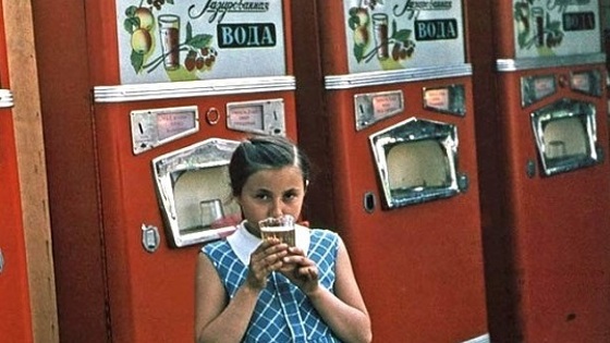 16 апреля 1937 в столовой Смольного был установлен первый аппарат с газированной водой. Это можно считать по-настоящем историческим событием. Дальше - больше. Автоматы стали появляться в Москве, а затем и по всему Союзу. Просто газированная вода стоила одну копейку, газированная вода с сиропом продавалась за три копейки. Стаканчики были многоразовыми, они просто полоскались струей воды, что было далеко от нынешних гигиенических стандартов.