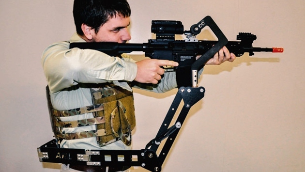 У солдатов Армии США скоро появится модифицированная «третья рука». По словам разработчиков, с помощью такого приспособления бойцы смогут лучше управлять тяжелым оружием. Сейчас устройство проходит первые тесты и уже в скором будущем Армия США будет использовать «третью руку» на постоянной основе. Разработчики рассказали, что прибор представляет собой механическое устройство, которое одним концом крепится к поясу, а другим — к оружию. Несмотря на сложную конструкцию, «рука» довольно быстро пристегивается к ремню, и в носке она почти незаметна из-за небольшого веса — 1,4 килограмма. Устройство было придумано для облегчения задач бойца: «рука» помогает равномерно распределить вес тяжелого оружия, а также освободить руки бойца. «Третья рука» подвижна, и легко подстраивается под движение солдата. Она крепится на винтовку на небольшом подвесе, и потом солдат может поднять ее на нужный уровень. Крепление достаточно устойчиво, что позволяет бойцу проходить полосы препятствий и не беспокоиться о новом девайсе. В случае опасности солдату необходимо будет лишь поднять руки, взяться за винтовку и открыть огонь. «Рука» не только облегчает ношу солдату, но и помогает ему при стрельбе: кронштейн немного приглушает отдачу, что повышает точность стрельбы. Сейчас устройства поддерживают автоматы M4 калибра 5,56 миллиметра, но в будущем разработчики планируют усовершенствовать «третью руку», чтобы она подходила и для пулеметов М240 В и М249. Напомним, что автоматы M4 весят 3,4 килограмма, поэтому для тяжеловесных М240 В и М249, которые весят 12,5 и 10 килограммов соответственно, будет придуман более прочный кронштейн. Первые испытания показали, что с основными задачами «третья рука» справляется удачно. Когда именно Армия США начнет внедрять устройство в постоянный обиход не уточняется.
