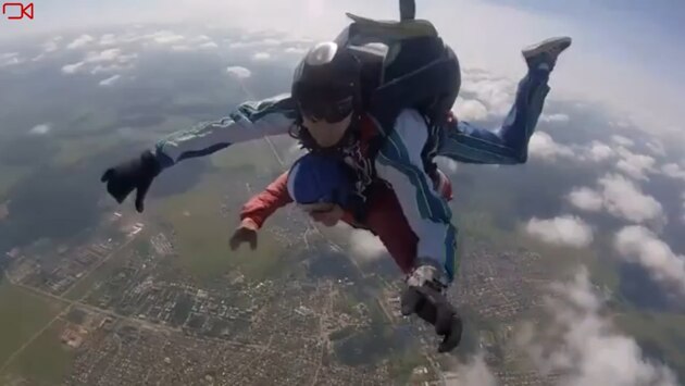 63-летняя жительница Дзержинска, с детства прикованная к инвалидному креслу, прыгнула с парашютом