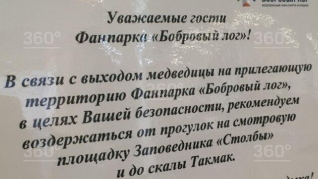 Фанпарк «Бобровый лог» в Красноярске предупредил о вышедшей из тайги медведице