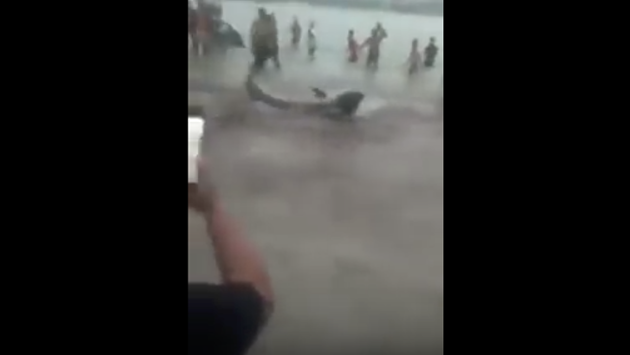 В Китае акула выбросилась на мелководье, чтобы напасть на людей. Инцидент попал на видео, которое уже выложили в Сеть. Сообщается, что ЧП произошло на курорте Дадунхае. На кадрах видно акулу, которая изворачивается и всеми силами пытается атаковать отдыхающих. К счастью, все ее попытки оказались тщетными. Как сообщает 360tv.ru, акула была длиной около двух метров. Ранее "Свободная пресса" писала, что на побережье острова Файр (американский штат Нью-Йорк) акулы напали на детей. Во время купания были укушены 12-летняя девочка и 13-летний мальчик. Школьники получили глубокие раны. Новости по теме: В Австралии стильный пенсионер избил акулу