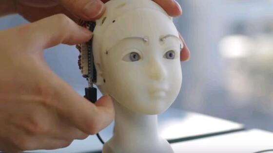 Робот представляет собой модель головы ребенка Группа японских инженеров создала робота, который может выражать эмоции при помощи движения глаз, бровей и век. Робот наблюдает за мимикой человека и повторяет выражения лица. Части лица приводятся в движение при помощи специальных встроенных моторов, "Говорит Москва".