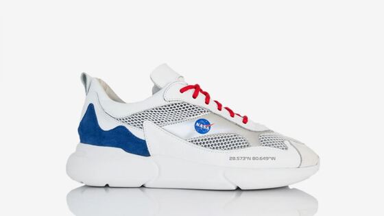 Расцветка и дизайн обуви напоминают скафандры космонавтов, которые совершили легендарный полет. Координаты, написанные на кроссовках, тоже не случайны. По ним можно найти космический центр Кеннеди во Флориде, откуда в 1969 году стартовала миссия "Аполлон-11".
