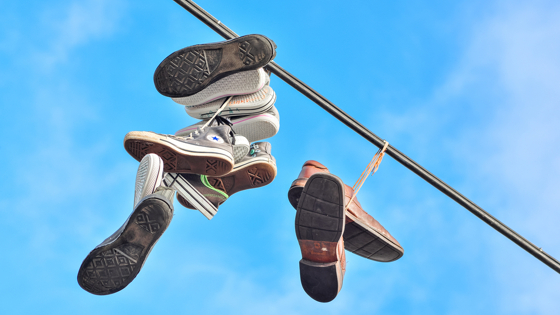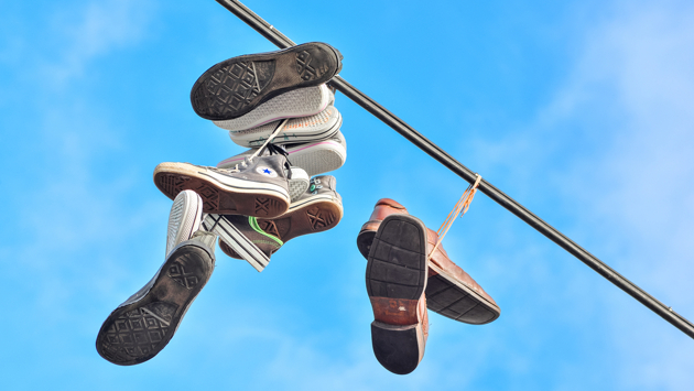Городские жители, имеющие привычку смотреть не только себе под ноги, но и на небо, наверняка замечали, как на проводах висят ботинки или кроссовки. Кто их туда забрасывает и зачем, выяснил "Рамблер".