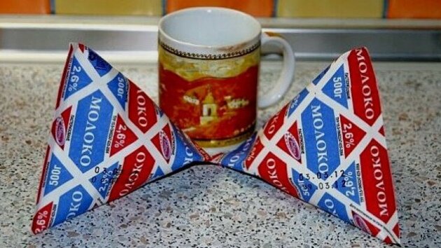 Когда-то в СССР продавали молоко в треугольных картонных пакетиках, расцветкой напоминавших современный российский флаг, только мозаичный. Это была очень необычная упаковка — не каждый до такого додумается. Они были невероятно эргономичными, удобными — хорошо хранить, хорошо перевозить и еще лучше утилизировать после использования. Экологичная тара! Одна беда — склеивали их неважно: частенько волшебные треугольнички протекали по углам.