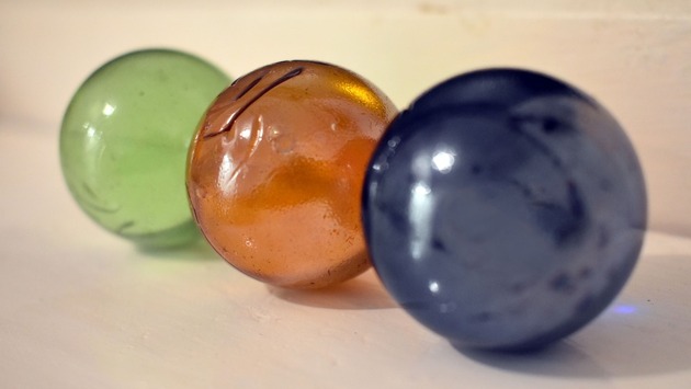 Таинственные шарики завораживали неприхотливую детвору, их прилежно коллекционировали, обменивали, дарили, на них играли как на деньги. Ценность такого шарика зависела от гладкости и цвета. Самыми распространенными были бесцветные, чуть реже встречались темно-зеленые и синие, совсем редко — голубые, молочно-белые и коричневые. О происхождении этих сокровищ» ходили самые разные легенды.