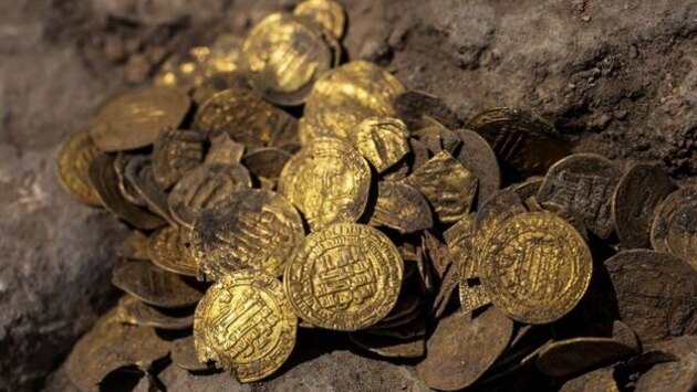 В самом центре Израиля были неожиданно найдены 1100-летние золотые монеты эпохи Аббасидов — династии арабских халифов, которая правила с 750 по 1258 год. Монеты из золота 999 пробы, которая считается самой чистой, находились в глиняном сосуде. Масса монет — 845 граммов: в денежном эквиваленте времени, когда их отчеканили, этого количества хватило бы на покупку роскошного дома в центре города. Археологи пока не могут сказать, кому принадлежали монеты, и почему за ними так никто и не вернулся. “Человек, который закопал это сокровище 1100 лет назад, должно быть, хотел позже найти его и даже закрепил сосуд гвоздем, чтобы он не сдвинулся с места”, — сделали вывод руководители работ Лиат Надав-Зив и Эли Хаддад из Управления древностей Израиля, — Золотые монеты в таком большом количестве встречаются крайне редко. Мы почти никогда не находим их при археологических раскопках, учитывая, что золото всегда было чрезвычайно ценным, переплавлялось и повторно использовалось, передавалось из поколения в поколение”. Молодой человек, первым обнаруживший клад, Оз Коэн, прокомментировал событие так: “Это было потрясающе. Я копал землю и вдруг увидел нечто, похожее на очень тонкие листья. Когда я снова взглянул, то увидел, что это были золотые монеты”. Первичная экспертиза монет показала, что в сосуде находились полные золотые динары и 270 маленьких вырезок из золота — долей динара, используемых в качестве мелких разменных денег. Одна из вырезок удивила археологов. Ею оказался фрагмент золотого солида — монеты, отчеканенной в Константинополе во время правления византийского императора Феофила. Присутствие заграничной монет — важное и редкое доказательство регулярных торговых связей между двумя империями, которые на момент закапывания клада были соперниками.