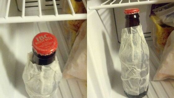 Охлаждаем напитки быстро. Чтобы быстро охладить бутылку пива, оберните ее влажным бумажным полотенцем и поставьте в холодильник. 15 минут — и все готово.