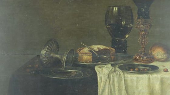 На полотне под названием «Натюрморт» изображены стол с белой скатертью, пирог с мясом, орехи и булочка, а также серебряный кубок и стеклянная посуда. Картина приписывается Геррету Виллемсу Хеда, сыну известного мастера натюрморта Виллема Класа Хеда, считающегося одним из великих художников золотого века голландской живописи. Авторство еще предстоит доказать, но отмечается, что подпись Геррета Виллемса на полотне очень похожа на подпись его отца. Также специалисты допускают, что это могла быть их совместная работа.