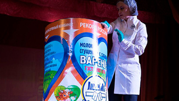 На Любинском молочноконсервном комбинате изготовили гигантскую банку варёной сгущенки. Достижение внесли в Книгу рекордов России как «Самая большая жестяная банка вареного сгущенного молока в России».