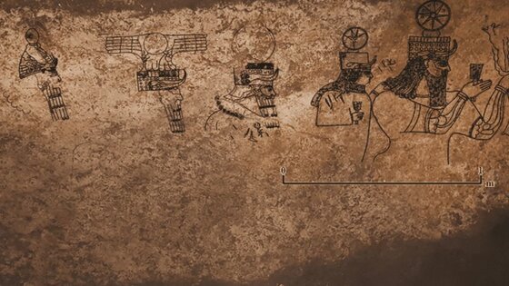 Кстати, это был период высочайшего расцвета Ассирии, которая впоследствии утратила статус независимого государства. Подземный комплекс, вероятно, был местом сакральным. На его стенах археологи обнаружили целый ряд произведений искусства, выполненных в ассирийском стиле. Некоторые сцены являются масштабными, они изображают процессии богов. В этих шествиях участвуют, например, бог бури и дождя Хадад, бог Луны Син и богиня плодородия Атаргатис.