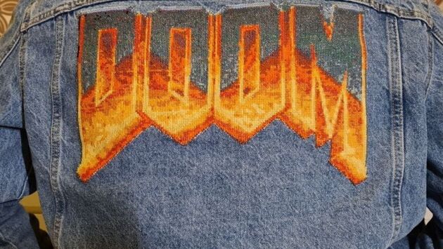 Фото: жена вышила логотип культовой DOOM на джинсовке мужа