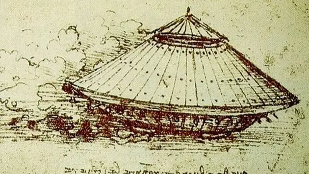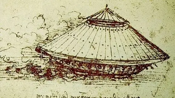 Леонардо да Винчи был в восторге от идеи полетов, поэтому большую часть времени он размышлял, как поднять человека в воздух и вернуть обратно. Первый парашют Леонардо да Винчи нарисовал в 15 веке. Он представлял собой запечатанное льняное полотно, которое держала пирамида из деревянных столбов по семь метров. Однако парашют Леонардо никогда не испытывался. Лишь в 2000 году смельчак Адриан Николс построил парашют, основанный на проектах Леонардо и выжил.