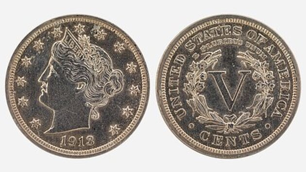Исследователи из Смитсоновского института полагают, что монеты были отчеканены в начале 1913 года, но в оборот не поступили, так как дизайн с головой статуи Свободы на реверсе и римской цифрой V на аверсе был выведен из использования. Точное количество выпущенных монет неизвестно, а пять имеющихся на руках экземпляров считаются одними из самых редких и дорогих в американской нумизматике.