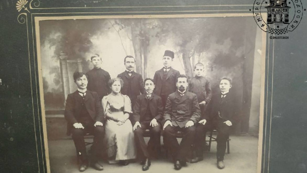 На обороте фотографии написано, что сделали её 10 декабря 1907 года. Перечислены и те, кто на фото запечатлены: среди них галантерейщик, мануфактурист, доверенный по магазину, «мальчики Федя Васильев и Вася Лештаев». Участников фото перечислили по статусу, а значит, точнее понять, кто здесь кто именно, не удаётся.