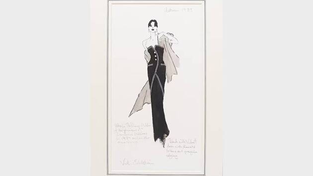 Уточняется, что наряд, созданный по упомянутому эскизу, представляет собой черное платье длины миди без бретелей с тремя бриллиантовыми пуговицами и имитацией кармана. Королевская особа впервые вышла в свет в таком образе на премьеру фильма «Опасные связи» в 1989 году.