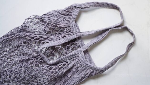 Длина авоськи составляет 3,05 метра, ширина — 2,03 метра. Общая длина изделия с ручками — 3,9 метра. Для работы понадобилось 5,5 метра полиамидного шнура.