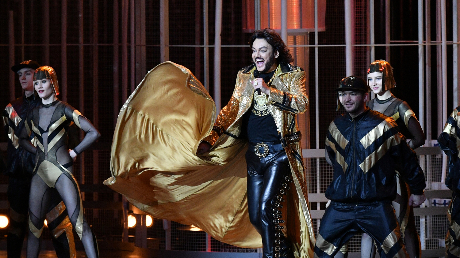 Главный модник всея России, недавно сменивший 27 костюмов за один концерт, тоже был поклонником творчества Юдашкина. Взгляните, например, на золотой плащ, в котором Филипп Бедросович пришел на модный показ «Бал цветов» в 2019 году.