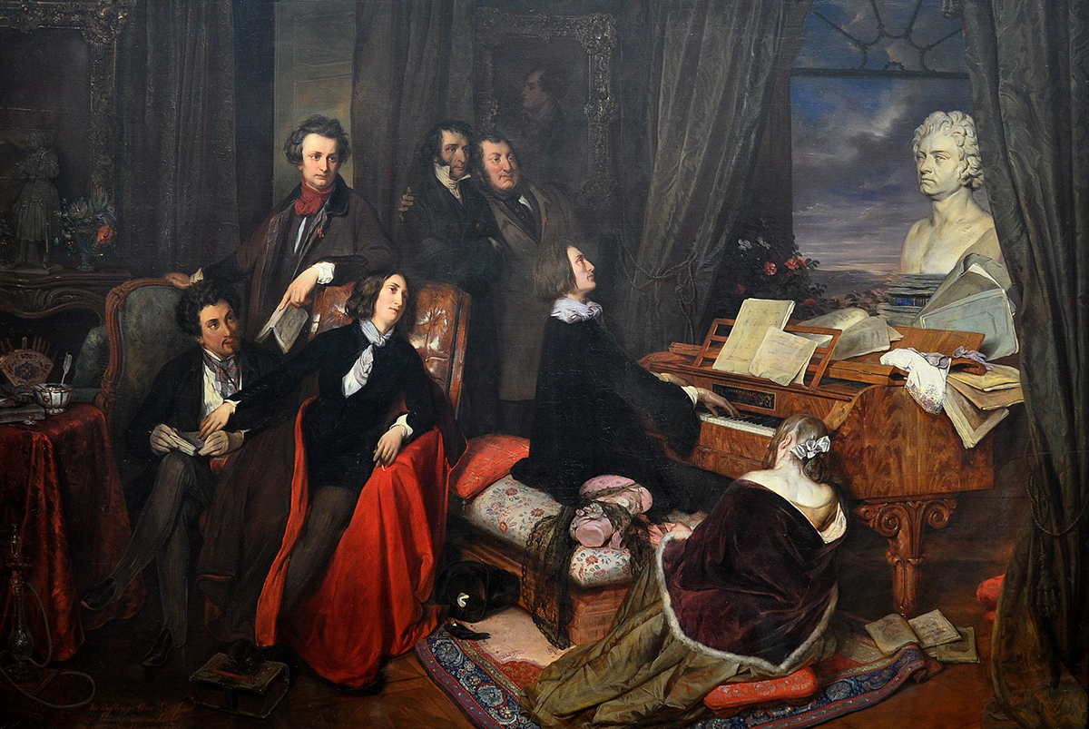 Яркий венгерский пианист начинал концерты с того, что тряс своими длинными светлыми волосами и бросал на пол зеленые перчатки. Затем он начинал играть так виртуозно, что все сходили с ума. Баронессы и графини рвали друг другу волосы, пытаясь завладеть стаканом или носовым платком, которые использовал Лист.