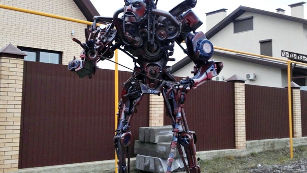 Шестеренки, цепи и поршни: в Сызрани механик наладил производство роботов из автозапчастей