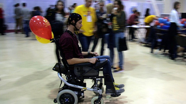 Силой мысли теперь можно отдавать команды смартфону, планшету и даже инвалидной коляске. Страницы на экране планшета будут перелистываться так, как вы им прикажете, а коляска поедет в нужном направлении. Технологию разработали молодые ученые из Ростова-на-Дону, и ее уже успешно тестируют люди с ограниченными физическими возможностями, для которых в основном и создавался новый нейроинтерфейс — мобильная гарнитура, передающая сигналы мозга на управляемое устройство. Сейчас авторы технологии ищут инвестора, чтобы разработку можно было запустить в серийное производство. "Ничего сверхъестественного" Отдать мысленный приказ и заставить коляску просто поехать вперед не так просто. По крайней мере мне это удается далеко не сразу. Представлять "картинку" бесполезно, командовать вслух — тоже. "Нужно сформировать ту же самую мысленную команду, которую каждый раз генерирует наш мозг, когда мы ходим. Большинству людей это удается не сразу, потому что в обычной жизни мы не часто задумываемся о том, как именно мы должны управлять правой и левой ногами. Лично я, когда тестирую нейроинтерфейс на себе, представляю, как я иду по лестнице", — объясняет Николай Свиридов, руководитель ООО "NeuroIT", автор идеи и один из создателей разработки. Мысль о лестнице помогает — я представила, что мне нужно подняться на ступеньку, и кресло наконец двинулось вперед, а стена небольшого кабинета, в котором мы проводим эксперимент, стала стремительно приближаться. "Чтобы остановиться, надо просто расслабиться, перестать думать о движении ногами!" — спешит подсказать Николай, пока я не врезалась. Но остановить коляску мне с непривычки так же непросто, как и сдвинуть с места. Поэтому я просто выезжаю в коридор, благо он длинный, можно ехать и не волноваться. Сначала все это кажется некоей мистификацией — поверить, что никто за твоей спиной не нажимает тайком на кнопки какого-нибудь пульта, получается не сразу. Однако сами разработчики утверждают, что "ничего сверхъестественного" в таком мысленном управлении нет. Как это работает Управление происходит с помощью мобильной гарнитуры, которая состоит из "шапочки" с несколькими датчиками и небольшой, с четверть ладони, платы. "Это усилитель биопотенциала, который считывает электрическую активность мозга с поверхности кожи головы, передает их по каналу Bluetooth на любое устройство и позволяет выполнять мысленные команды или осуществлять мониторинг психофизиологического состояния человека", — рассказывает технический директор и сооснователь компании Дмитрий Лазуренко. Сигналы мозга датчики считывают в виде обычной энцефалограммы. Специальная программа преобразует эти данные в команды. "Чтобы управлять нейроинтерфейсом, необходимо откалиброваться. Во время процедуры калибровки происходит настройка каждой команды управления и закрепляются индивидуальные значения наблюдаемых сигналов мозга, основываясь на которых, программа принимает решение сгенерировать соответствующую команду с тем, чтобы передать ее креслу, — говорит Лазуренко. Всего для управления коляской предусмотрено четыре моторные команды — движение вперед, назад, поворот направо и налево. Аналогичные команды — вверх, вниз, вправо и влево — используются для управления смартфоном, только в этом случае они отдаются мысленным движением правой и ле