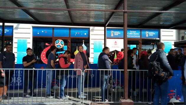 Сегодня в столице состоится первый матч чемпионата мира по футболу. Поболеть за свои команды приехали десятки тысяч болельщиков. Кто-то из них уже приобрел билет на матч своей любимой сборной заранее, кто-то в силу обстоятельств покупает их в порядке живой очереди. Так, почти сразу на выходе из вестибюля станции метро Добрынинская виден фирменный логотип чемпионата мира по футболу. А также длинная цепочка выстроившихся болельщиков в Главный пункт выдачи билетов в доме 4 по Житной улице. Москвич Юрий Патрушев со своим сыном приехал к десяти часам утра. Говорит, что каких-то особо долго стоять в очереди не пришлось. - Мы покупали через автоматы, так удобнее, очередь идет быстрее, и лучше, чем мы бы стояли в кассы. От силы мы простояли 20 минут, - сказал Патрушев. Кроме того, остальные пункты выдачи расположены в аэропортах Домодедово, Внуково и Шереметьево. - Не очень-то круто стоять здесь в очереди под солнцем, - говорит англичанин Хьюго Уильямс. - Хотя бы лавочки поставили, но думаю, это не испортит моего настроения.