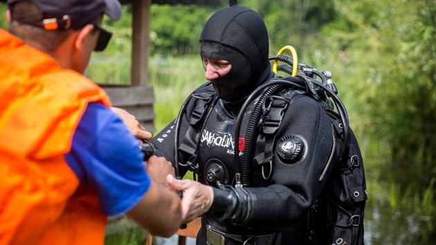 Влад, работает спасателем с 2007 года: «С малых лет хотел быть каким-то таким полезным для общества. Видел всякие фильмы, сюжеты про спасателей. Потом приехал в город, увидел одного МЧС-ника, полковник шёл по улице. Это уже после армии было, в 2007 году. Говорю: «Товарищ полковник, разрешите обратиться. Так и так». Он говорит: «Прямо по Октябрьской идите». Ну и пошёл туда, постучал в дверь, прошёл короткое собеседование, отправили в спасательный отряд. С каждым днём было что-то разное, от открытия двери до эвакуации: бабушек, которых поднять надо, поиска трупа, — всё. Параллельно работал в бассейне дайвером — людей обучал. Вообще по гороскопу я водный знак, Скорпион. Стихия — вода. С водой поэтому я очень близок. Обучался на Байкале почти 40 дней зимой. Подлёдное погружение — опускались на 50 метров практически. Я теперь только понимаю, что такое бездна. Взгляд теряется в этой бездне синей. Упал — это сленг профессинальный. Опустился, то есть. У нас вообще юмор такой своеобразный — защита ставится, блок на подсознании. Но всё равно, конечно, вспоминаешь. И того, и того, и другого. Кто-то может во сне присниться, не без этого. Но если быть таким мнительным, сентиментальным, то сложно. Достали — достали. С детьми очень печально. Родители приходят, а ты сам в ступоре. На поверхности мы можем увидеть здесь лежащего мертвого человека. «Ну да», — скажем. А под водой наше подсознание, инстинкт самосохранения говорит о другом: а вдруг он проснется, возьмёт тебя за руку. И встреча с трупом под водой — это своеобразное ощущение. Особенно если первая. У меня в первый раз ёкнуло. Потом говорю себе: тихо-тихо. Вот старший товарищ у нас — он всегда разговаривает мысленно. Нашел: ну всё-всё, тихо, сейчас мы тебя достанем. Потом взял его потихонечку, потащил. Да, я не купаюсь — только под душем и в бане. (Смеётся.) Как-то накупался уже. Нам и этого хватает — плюхнулся в воду, раз-раз, и всё. Рыба [под водой] — есть. Раки есть. Но мы же не раков приехали собирать, у нас тут дело, люди не поймут правильно. Скажу вам честно: вот такую видел. (Показывает, смеётся.) На самом деле она вот такая (показывает в два раза меньше) — вода обманывает образ. Есть такие традиции — у каждого они рождаются. Подходишь к водоёму, ручки помыл: отдай нам его, он тебе не нужен. А бывает, что не отдаёт. Было и по 70 дней лежали — не доставали, не могли найти. Тут дело случая. Положительные эмоции — обязательно. Песни поём — у нас даже своя рок-группа есть «Поющие водолазы». Пока перепеваем, а так — можно и сочинить, запросто. Сложно порой объяснить людям (родственникам), что работа закончена, дальше нет смысла, потому что можно нанести травму и себе: глубина, опасный карьер, где-то камень свалится, и всё. Одного ищем — другого калечим. (Родственникам это сложно объяснить). Да, поэтому при поисках необходимо присутствие полиции. Люди разные — эмоциональные, бывает, в драку лезут. Традиции есть, конечно. Достали утопленника, есть традиция — съесть мороженку. На смену заступать — берцы мы не чистим. Сдаёшь, почистил, и они стоят. Начистишь — будешь кататься весь день. С возрастом может развиться ДКБ — декомпрессионная болезнь. Поддерживать нужно себя в физической форме. Есть ограничения по возрасту, как и везде. До 65 — эта шутка сейчас актуальная. (Смеётся.) Водолаз почти 3 тысячи часов должен нанырять, чтобы уйти на заслу