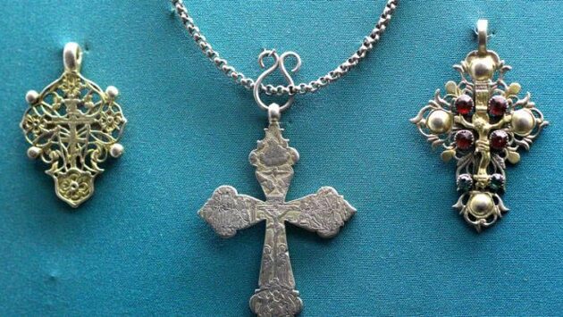 Традиция в момент принятия крещения надевать на себя нательный крест в православии возникла не сразу. Первые христиане себе на шею вешали подвески с ранними христианскими символами. Крест – как символ отличия Однако именно крест стал торжества жизни над смертью, символом новой эры, новой надежды. На это указывает христианский писатель Понтий, автор биографии Святого Киприана Карфагенского. Он пишет, что некоторые, особо усердные христиане во II и в III веке, чтобы претерпеть страдания за Христа, изображали на лбу крест, чтобы язычники их опознали и предали на мучения. Носить нагрудный крест стали в начале IV века: например, так делали священномученики Орест и Прокопий – их крeсты были выполнены из вечных металлов – золота и серебра. После чудесного явления креста на небе, появившегося перед битвой Великого императора Константина с Максенцием, даже язычники узнали, что именно знаменует собой этот крест – отныне он был символом победы Христа над дьяволом. А воздвижение в Иерусалиме креста Господня императрицей Еленой только подтвердило его силу, против которой не могла устоять даже смерть. После того, как Константин объявил православие государственной религией, подобные символы христианства стали носить многие жители Византии. Каноническое изображение креста было утверждено на Трульском соборе в 692 году, который постановил, что изображение Христа должно дышать величием и напоминать не только о страданиях, но и Его победе над смертью. Все – от ромеев На Русь обычай носить нательные кресты пришел с крещением Руси «от ромеев», то есть из Византии. Поначалу кресты были двух видов – «тельные», то есть те, которые носили у тела, и нагрудные – так называемые энколпионы, в которые обычно были включены частицы святых мощей. Впоследствии произошло традиционное разделение – нагрудные кресты стали носить только священники и архиереи, а нательные – все миряне. Традиционных форм креста много – он может быть четырех-, шести-, восьмиконечным или даже с якорем внизу, но на Руси наибольшее распространение получили восьмиконечные кресты с надписью на обратной стороне ««Спаси и сохрани». Нательный крест возлагают на верующего человека во время Таинства Крещения как исполнение слов Христа: «иже хощет по Мне ити, да отвержется себе; и возмет крест свой, и по Мне грядет»(Мк. 8:34). А священник в это время читает молитвы, в которых просит Бога послать на крест силу Духа Святаго, которая сохранила бы владельца в духовном и в телесном смысле. Крест для русского человека стал особой святыней – на нем клялись, им благословляли, ими братались, обмениваясь. Снятей с себя креста или отказ его носить всегда воспринимался православными христианами как знак отречения от веры, родины и русского народа. Смысл нательного креста Даже для современного человека нательный крест несет тот же самый смысл, что и для самых первых христиан. Во-первых, нательный крест – это память о крестных страданиях Христа и о том, что все грехи уже искуплены Им через крестную смерть. Нательный крест нужен для того, чтобы помнить о том, какой ценой выкуплено наше будущее спасение. Во-вторых, нательный крест – бессловесная молитва к Богу, наша просьба будущего спасения и ограждения нас козней нечистого. Это символ того, что человек полностью вручает свою судьбу и жизнь в руки Господа, н
