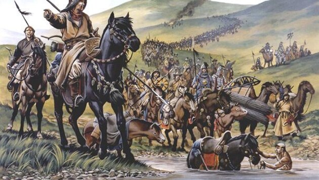 Согласно официальной точке зрения монголам понадобилось шесть лет, чтобы покорить Русь, еще примерно двадцать лет, чтобы привести ее население в данническую зависимость. Но зачем нужно было вторгаться в земли, лежавшие за несколько тысяч километров от столицы империи? Дискуссионные вопросы Существует несколько объяснений западного завоевательного похода монголов, во время которого ордынцам удалось не только разорить русские земли, но и дойти до территорий Польши и Венгрии. Согласно одному из взглядов, подчинив русские княжества монголы обеспечивали безопасность западного крыла своей империи. Другая версия делает акцент на преследовании монголами одного из своих наиболее грозных противников – половцев, которые укрылись в венгерских землях. Существует много вопросов и по избирательному завоеванию монголами русских городов. Например, почему Батыю в 1238 году понадобилось брать совершенно незначительный в стратегическом плане Козельск, потратив на его осаду почти 2 месяца, при этом обойдя стороной соседние Кром, Мценск, Домагощ, Курск, Смоленск. Лев Гумилев объясняет это местью внуку черниговского князя Мстислава, правившего тогда в Козельске, за убийство послов на реке Калка в 1223 году. Однако смоленский князь Мстислав Старый, также замешанный в этом убийстве, каким-то образом избежал ордынского гнева.[С-BLOCK] Часть исследователей, придерживающаяся альтернативной трактовки событий, происходивших в средневековой Руси, вообще отвергает такое явление как «татаро-монгольское иго». Лев Гумилев, к примеру, считал, что Русь и Орда – два государства, бок о бок сосуществовавшие на протяжении нескольких столетий и попеременно бравшие друг над другом верх. Другие исследователи пошли дальше, утверждая, что Русь и Орда это одно и тоже государство. По их мнению, «татаро-монгольское иго» -- просто специфический период в истории русского государства, когда все население страны было разделено на две части: мирные граждане, управляемые князьями и постоянное регулярное войско-Орда возглавляемое военачальниками. Так или иначе, любая из версий признает, что в течение XIII-XV веков Русь прошла сложный период междоусобиц, разорения, запустения и собирания земель, который подготовил формирование русского государства под началом нового политического центра – Москвы. Однако, чтобы объяснить почему так произошло, обратимся к подтвержденным официальной историей фактам. Лидер В конце XII века в Монголии появился новый лидер – Тэмуджин, который очень быстро подчинил своему влиянию разрозненные кочевые племена. Тэмуджин прекрасно владел тактикой степной войны, одерживая победу за победой. Поверженным врагам он предлагал выбор: или присоединиться к нему, или умереть. Большинство становилось на сторону полководца, постепенно увеличивая численность его армии. К 1206 году Тэмуджин под новым именем – Чингисхан – превратился в самого могущественного правителя севернее Великой китайской стены. Жесткая централизация государственной и военной власти и требования неукоснительного исполнения указов позволяли ему управлять многомиллионным населением кочевой империи. Чингисхан принуждал темников держать на окраине своих владений вооруженные отряды, готовые в любой момент защитить земли монголов от нападения или выступить в очередной карательный п