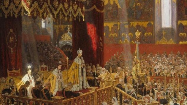 Венчание на царство – это особый политический обряд и церковная церемония, которые было привнесено на Русь, предположительно, Софией Палеолог, бабушкой Ивана Грозного. Этот обычай, складывавшийся на Руси в течение нескольких поколений монархов, включил в себя и помазание на царство, особый вид миропомазания. Византийских басилевсов, кстати, помазали елеем, а не миром, что имело совершенно иную смысловую нагрузку. Вторичное же помазание миром (а миропомазание происходит один раз в жизни христианина, во время Крещения) символически приближало сам статус царя ко Христу, что и позволило в своё время Ивану Грозному сказать: «Как человек я грешен, но как царь – свят». Само слово «венец» происходит от греческого στέφανος (stefanos), которое, в сою очередь, является производным от глагола, означающего «опоясывать», «окружать стеной, защищая», «соединять» или «воссоединять». Когда византийские императоры венчались на царство, они принимали венец ответственности за защиту своего государства, буквально «замыкали государство собой». Христианство же внесло и свой сакральный смысл. Терновый венец Христа был, в том числе, и короной, опоясывающей, по сути, все человечество. Также стоит вспомнить, что «венец» означает и некий итог пути. А потому венчание на царство в христианской традиции стало восприниматься не только как некий итог политических амбиций конкретного человека, который теперь обязуется быть каменной стеной для своей страны. Царь, по сути, брал на себя ответственность быть «достойным Христа» и нести это бремя до самой смерти.