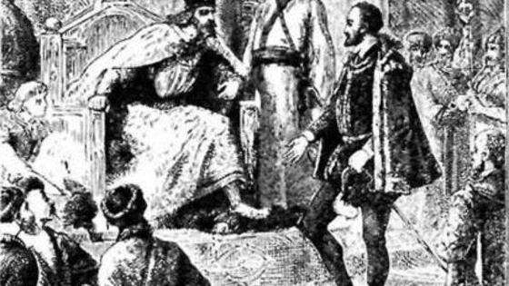 Англия установила крепкие торговые отношения с Россией только в середине века. Дружба эта продолжалась совсем недолго, но все-таки она была... В 1554 году царь Иван IV Грозный в своей кремлевской резиденции принимал первого в истории Московского государства посланца короля Эдуарда VI. C первых же дней своего правления английскому монарху Эдуарду VI не давала покоя всемирная слава таких легендарных испанских и португальских конкистадоров, как Христофор Колумб и Васко да Гама. От своего любимчика и непререкаемого авторитета в морских делах Себастьяна Кабота король все настоятельнее требовал организовать экспедицию, маршрут которой пролегал бы через Полярное море в загадочный Китай. Новыми рынками настойчиво интересовались и лондонские негоцианты, товары которых — сукно и изделия из металла — славились во многих странах Европы. В один из зимних вечеров 1553 года Кабот пригласил на беседу своего лучшего ученика, прославленного английского капитана и адмирала Ричарда Ченслера. «Наше общество решило послать корабли в плавание, еще не бывалое, — говорил Кабот своему ученику на этой встрече. — Мы хотим найти путь в Китайскую землю, неведомый ни испанцам, ни португальцам, ни голландцам». Весной 1553 года подготовка к предстоящей экспедиции была завершена и на Темзе, у пристани одного из предместий Лондона стояли готовые к отплытию три корабля с непривычными для наших дней названиями: «Эдуард — благое предприятие», «Добрая надежда» и «Доброе доверие». 11 мая у этой пристани на Темзе собралось множество народа. Вот как описывает в своей книге Ченслер эти торжества: «Корабли плыли вниз по Темзе, к морю, когда поравнялись с королевским дворцом, я приказал выстрелить из всех пушек, отдавая прощальный салют. Кавалеры снимали свои высокие шляпы с широкими полями, а дамы махали маленькими шелковыми платочками с вышивкой разных цветов Хочу сказать, что наши три корабля уходили в опасное плавание неизведанным путем к далекой Китайской земле, как на торжество». Намеченное на первую декаду июня рандеву в районе норвежской крепости Вардехус не состоялось. Виной тому — жестокий шторм, который разлучил суда английской экспедиции. Стараясь не терять из вида скалистые берега, опытный кормчий Ченслер отправился на Восток и скоро заметил, что береговая черта начала уклоняться южнее. Обогнув неизвестный еще английским морякам Кольский полуостров, «Эдуард» вышел в Белое море, где раньше никогда не бывали англичане. А уже через несколько дней корабль Ченслера встал на якорь в живописном устье реки. К борту корабля «Эдуард — благое предприятие» подошла шлюпка с неизвестными бородачами, то были холмогорские рыбаки. Они-то и сообщили, что его корабль пришел не к берегам Индии или Китая, а к берегам Московской земли, и что ближайший город называется Холмогоры и стоит он у реки Двины. А владеет этой землей царь и великий князь Иоанн Васильевич, который живет в Москве. Через несколько дней Ченслера навестили какие-то люди из Холмогор, которым он торжественно продемонстрировал красочное послание короля Эдуарда VI, адресованное «всем государям и королям» тех стран, куда довелось бы попасть этой морской экспедиции. Люди из Холмогор не знали латинского языка, но с большим интересом разглядывали красочную королевскую бумагу, заверенную большой печатью. Давая 