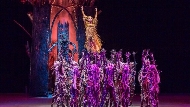 «Жар-птица» открыла историческую триаду русских балетов Стравинского и прославила его как композитора. В либретто «Жар-птицы» соединились мотивы различных сказок, и балетмейстер Эльдар Алиев пошёл по тому же пути. В его версии Жар-птица обретает черты фантастических героинь русских опер, а наиболее тесно перекликается с образом Царевны-Лебедь из «Сказки о царе Салтане» учителя Стравинского, Римского-Корсакова. Она оказывается заколдованной девушкой, помогающей Ивану-царевичу победить злого волшебника Кащея и его поганую свиту. После смерти Кащея и гибели его царства чудесная птица превращается в прекрасную царевну, которая становится невестой Ивана. В своей хореографии Эльдар Алиев сохранил традиционное противопоставление мира добрых земных персонажей (подруги-царевны, свита царевича) изломанной гротескной пластике тёмных сил. А перед солисткой поставил двойную творческую задачу: ей необходимо показать преображение из волшебного существа, олицетворяющего собой стихию пламени, в русскую лирическую героиню.